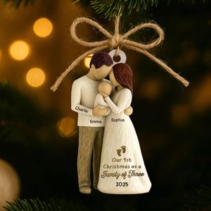 Celebrate the beautiful milestone of your first Christmas as a family with this3D Effect Family of Three Ornament. Featuring a loving couple holding their newborn in a warm embrace, this ornament captures the joy and love of starting a family. The ornament is personalized with the names of each family member and the year, creating a meaningful keepsake to cherish for years to come.