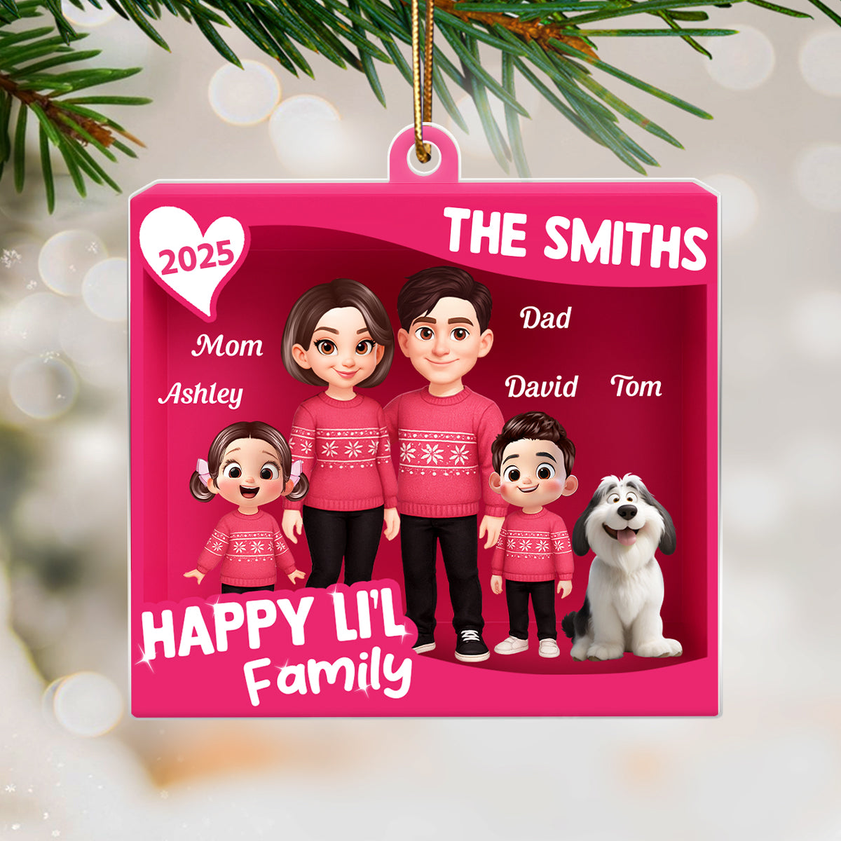 Celebrate the holiday season with a timeless keepsake that captures the warmth of family and the joy of Christmas. This beautifully crafted acrylic ornament features a festive red truck design with your family sitting together, creating a heartwarming scene that can be personalized with names or special details. Perfect for husbands, wives, and families who treasure meaningful holiday traditions, this ornament is more than just décor—it’s a memory you’ll revisit every Christmas. Add your own personal touch and turn your tree into a story of love, togetherness, and holiday cheer.