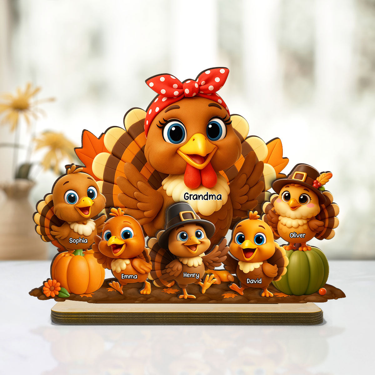 Celebrate the magic of fall and the joy of being a grandma with this charming Grandma Scarecrow Standing Grandkids Pumpkins plaque. Designed with a unique 3D effect and made from quality plywood, it brings to life an adorable autumn scene: Grandma as a sweet scarecrow, surrounded by pumpkins - each one customized with the names of her beloved grandkids. Whether it’s sitting on a mantel, desk, or shelf, this plaque is a daily reminder of love, laughter, and cozy fall memories.