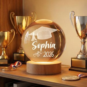 BMSM10 BMSM15 BMSM20 Turn a proud graduation moment into a glowing memory with this elegant personalized crystal ball LED night light. Designed to instantly capture attention, the illusion-style graduation cap paired with the graduate’s name and year creates a magical, modern keepsake. As the warm LED light softly illuminates the crystal-clear ball, it builds excitement, celebrates achievement, and transforms years of hard work into a meaningful display they’ll cherish every day.