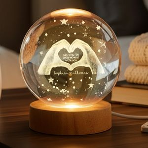 BMSM10 BMSM15 BMSM20 Express love, gratitude, and connection with this beautifully personalized crystal ball LED night light. Featuring an elegant heart-hands design surrounded by soft celestial details, this glowing keepsake is custom printed with names and a heartfelt message that speaks volumes without saying too much. The warm LED illumination brings comfort and intimacy to any space, making it a meaningful reminder of appreciation, love, and shared moments. Perfect for anniversaries, Valentine’s Day, or everyday “just because” gifting, this piece turns gratitude into something you can see and feel.