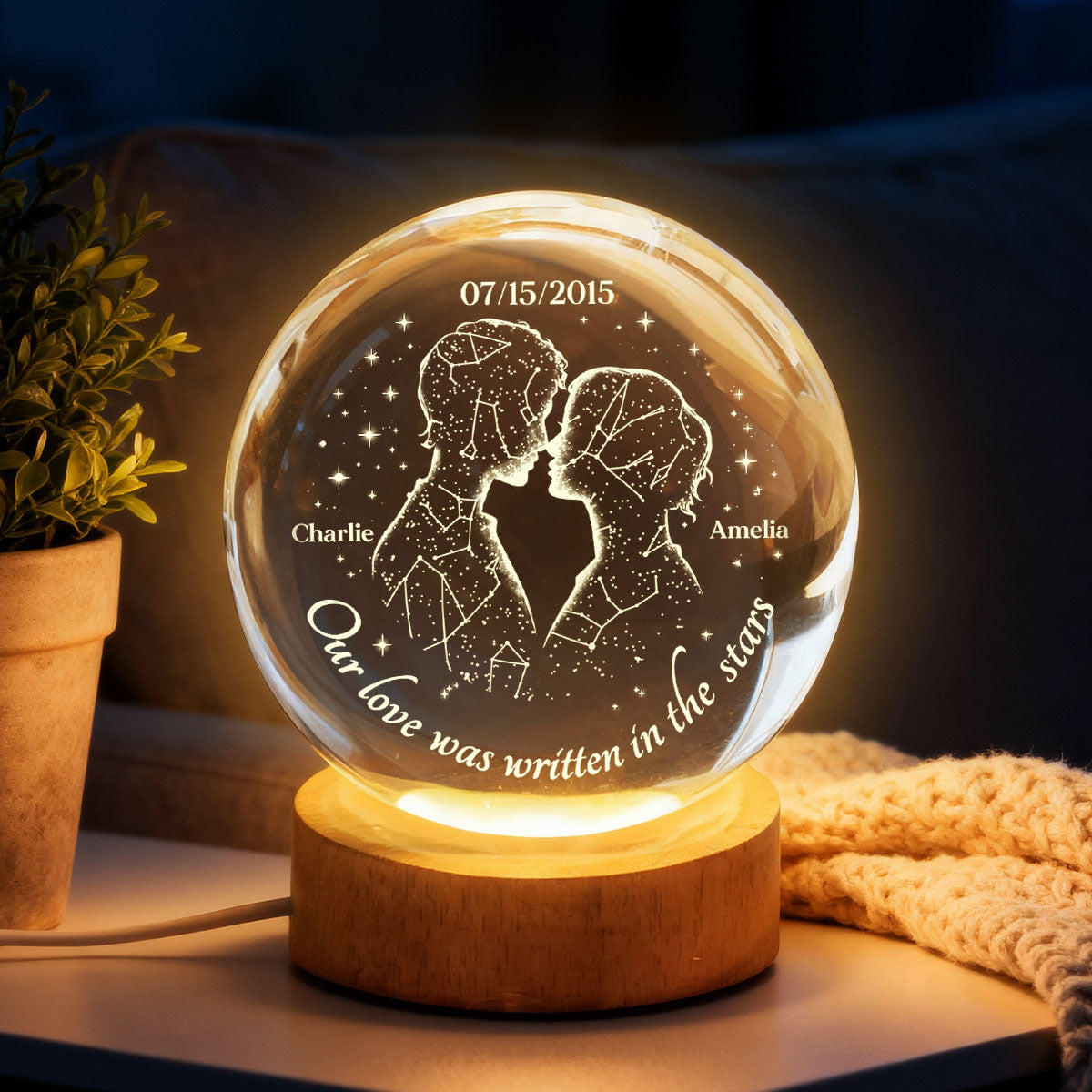 This personalized crystal ball night light is more than décor—it’s a glowing reminder of love, commitment, and the night two lives became one.