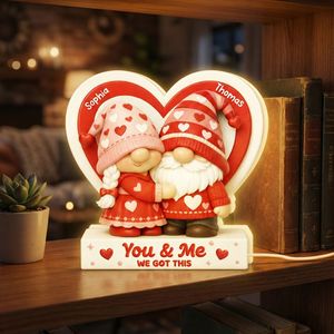 Light up your love story with this charming personalized gnome couple light box that radiates warmth, comfort, and togetherness. Designed to instantly capture attention with its soft glow and adorable heart-shaped backdrop, this piece draws you in with cozy details and a sweet message that says it all. Personalized with names and a meaningful phrase, this printed light box turns everyday décor into a glowing symbol of your bond—perfect for Valentine’s Day, anniversaries, or a heartfelt surprise “just because.”