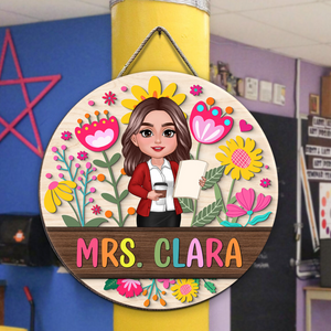 Add a cheerful, welcoming touch to any learning space with this personalized wooden sign. Bursting with colorful flowers and a custom cartoon teacher illustration, it’s a fun and heartfelt way to celebrate the joy of teaching. Whether hung on a classroom door or wall, it’s sure to make students smile and remind everyone who the heart of the room is.