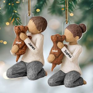 BMSM10 BMSM15 BMSM20 Celebrate the special bond between a dog and their owner with this sweet 3D-effect acrylic ornament. Featuring a boy or girl lovingly hugging their dog, this ornament is perfect for any dog lover or dog parent. It can be personalized with the dog's name and the owner's name, making it a unique and meaningful gift. Whether for a Christmas tree or as a keepsake, this ornament will be cherished for years to come.