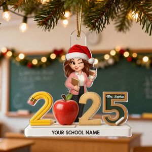 Celebrate the educator who makes a difference every day with thisPersonalized 3D Effect Christmas Teacher Ornament. Featuring a festive design with a teacher character, school-themed details, and customizable name and school, this ornament captures the warmth and dedication of teaching — perfect for adding a personal touch to any Christmas tree or classroom decor.