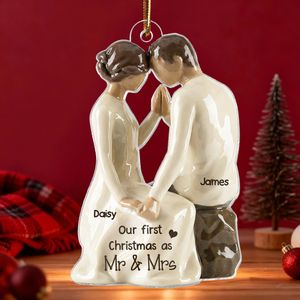 Celebrate the love and joy of your first Christmas together as a married couple with this beautifully designed 3D-effect acrylic ornament. Featuring a romantic scene of a couple sitting side by side, sharing a quiet and intimate moment, this ornament is perfect for newlyweds. Personalized with your names and the phrase "Our First Christmas as Mr. & Mrs.," it makes a special keepsake to cherish for years to come.