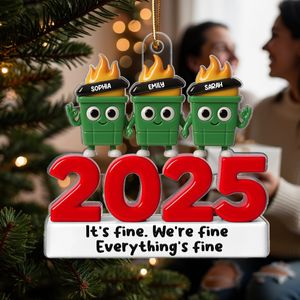BMSM10 BMSM15 BMSM20 Add a dose of humor to your holiday season with the 3D Effect Dumpster Fire “It’s Fine, We’re Fine” Personalized Acrylic Ornament. This hilarious ornament captures the spirit of surviving another year with a wink and a smile—perfect for friends, coworkers, or anyone who knows that laughter is the best way to handle life’s chaos. Customize each little dumpster with names for a personal touch that makes it even more relatable and fun. It’s the ultimate tongue-in-cheek keepsake that turns “everything’s fine” into a festive tradition.