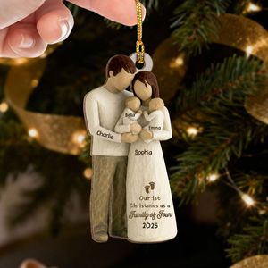 Celebrate your first Christmas as a family of four with this heartfelt 3D-effect wooden ornament, featuring a loving mom and dad holding their twin babies. The personalized touch, with your names and the year, makes this a unique keepsake to commemorate this special milestone. Perfect for new parents or for families celebrating the arrival of twins, this ornament will be a treasured reminder of your growing family.