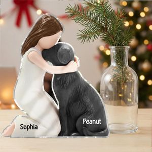 Celebrate the pure, unconditional bond between a girl and her dog with this heart-touching personalized acrylic block plaque. Featuring a beautiful 3D-effect illustration of a girl embracing her loyal companion, this piece captures the warmth, comfort, and devotion that only a beloved pet can bring. Personalized with both names, it becomes a meaningful keepsake honoring the furry friend who is truly part of the family.
