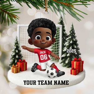 BMSM10 BMSM15 BMSM20 Celebrate your young soccer star with this 3D Effect Kid Soccer Player Personalized Acrylic Ornament! Featuring a cute, lively soccer player in action, this ornament brings the excitement of the game into your holiday décor. Personalized with the player’s name, team name, and year, it’s the perfect keepsake for young athletes, soccer teams, and proud families. Whether hanging on the tree or displayed year-round, this ornament will be a cherished reminder of their passion for the game.