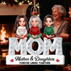 BMSM10 BMSM15 BMSM20 Celebrate the unbreakable bond between mother and daughters with the3D Shining Effect Mom And Daughters Personalized Acrylic Ornament. This heartwarming ornament features a dazzling “MOM” design adorned with sparkling detail, accompanied by adorable holiday characters representing each daughter. Personalize it with names to create a beautiful keepsake that captures love, connection, and family spirit. Perfect as a Christmas gift that Mom will cherish year after year.