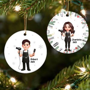 BMSM10 BMSM15 BMSM20 Celebrate the creativity and dedication of the hair professionals in your life with this charmingChristmas Hairdresser Personalized Ceramic Ornament. Designed to catch attention with its adorable stylist characters and clean, festive layout, it highlights the tools of the trade in a fun, cheerful way. Personalized with a name and year, it becomes a meaningful keepsake that builds desire by honoring the unique talent and hard work of hairstylists, barbers, and salon artists. Whether displayed on a Christmas tree or gifted as a token of appreciation, it inspires action as the perfect holiday gift for any hairdresser.