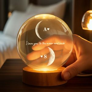 BMSM10 BMSM15 BMSM20 Celebrate a love that’s written in the stars with this enchanting personalized crystal ball LED night light. Designed to immediately captivate with its soft, celestial glow, this piece features your custom moon phases paired with a heartfelt message—symbolizing the exact moments your love story began. Personalized with initials or names, this printed crystal-style keepsake transforms romance into a magical display of connection and meaning, making it a perfect Valentine’s Day, anniversary, or just-because gift for the one who means everything.