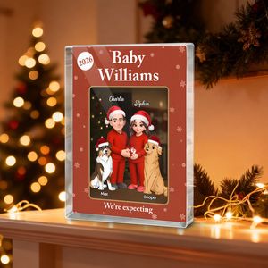 Expecting Parents Christmas Pregnancy Baby Arriving With Dogs Cats Custom Figure Style - Personalized Acrylic Block Plaque