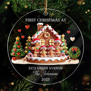 First Christmas New Home 3D Effect Gingerbread Family House - Personalized Acrylic Ornament