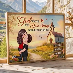 BMSM10 BMSM15 BMSM20 Celebrate faith, love, and destiny with this God Wrote Our Love Story Personalized Christian Couple Poster. Designed to inspire warmth and devotion, this artwork beautifully reflects the belief that true love is part of God’s divine plan. The romantic illustration paired with a peaceful church setting and meaningful scripture-style message creates a powerful reminder that your journey together was written long before you met. Personalized with your names and special date, this poster becomes a treasured keepsake—perfect for couples who value both love and faith. Whether displayed in your living room, bedroom, or prayer space, it serves as a daily affirmation of commitment, blessings, and shared purpose.