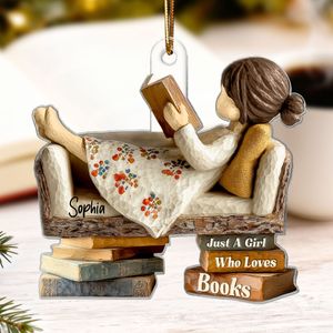 Man Woman Reading Book On Sofa 3D Effect - Personalized Acrylic Ornament - Christmas Gift For Book Lover, Bookworm