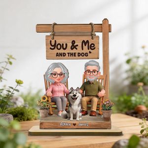 BMSM10 BMSM15 BMSM20 Celebrate timeless love, companionship, and the joy of shared memories with this heartfelt keepsake. This 2-layered wooden plaque features a charming illustration of an elderly couple sitting together on rocking chairs with their beloved dog at their feet. The personalized plaque adds a special touch with custom names and an endearing message that’s perfect for marking milestones like anniversaries or simply cherishing the bond you share. Designed for warmth and sentiment, it’s a beautiful way to celebrate lasting love, making it an ideal gift for any occasion.