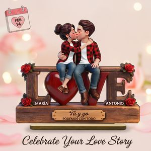 BMSM10 BMSM15 BMSM20 Celebrate romance with a touch of passion and cultural charm through this beautifully crafted personalized wooden plaque. Featuring a loving couple sharing a kiss atop a bold LOVE design adorned with roses and a heartfelt Spanish message, this piece instantly captures attention and emotion. Customized with names, it transforms a romantic scene into a deeply personal keepsake—perfect for expressing love, commitment, and togetherness on Valentine’s Day, anniversaries, or any moment that deserves to be remembered.