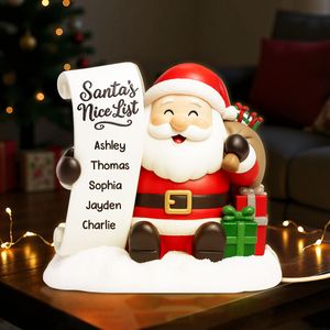 BMSM10 BMSM15 BMSM20 Celebrate the joy of Christmas with a magical light box that puts your loved ones on Santa’s Nice List. This festive decoration features a glowing Santa holding a scroll customized with kids’ names, making it a heartwarming centerpiece for your holiday décor. Perfect for Grandma, Grandpa, or the whole family, it’s a keepsake that captures the magic of togetherness. Whether placed on a mantel, side table, or under the tree, this personalized LED light box adds warmth and cheer to every holiday moment.