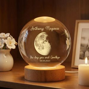 BMSM10 BMSM15 BMSM20 Commemorate a life and a moment that will never be forgotten with this deeply meaningful personalized crystal ball LED night light. Featuring the exact moon phase from a significant date and printed with a name and heartfelt message, this elegant keepsake captures attention with its celestial beauty and emotional depth. As the soft LED glow illuminates the moon within, it offers comfort, reflection, and a gentle reminder that love continues beyond goodbye—making it a touching tribute for honoring cherished memories.