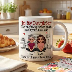BMSM10 BMSM15 BMSM20 Celebrate your daughter with a heartfelt gift from both Mom and Dad, honoring the beautiful journey of watching her grow into an incredible mother. This personalized mug features a touching message paired with custom characters and names, capturing the love, pride, and deep family connection you share. Thoughtfully designed, it transforms an everyday item into a meaningful keepsake she’ll cherish with every sip.